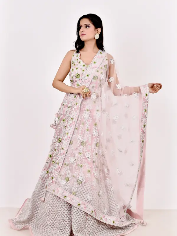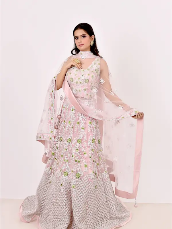 Dupatta Border: 4 side work Dupatta Color: Light pink Dupatta Fabric: Net Dupatta Work: Dori heavy work